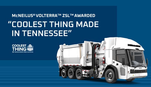 McNeilus Truck and Manufacturing's Volterra™ ZSL™ electric refuse and recycling collection vehicle has been named the winner of the 2025 “Coolest Thing Made in Tennessee” competition.LEARN MORE
